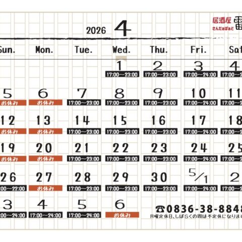 また、4月の最終週の日曜26日は16:00から営業いたします!